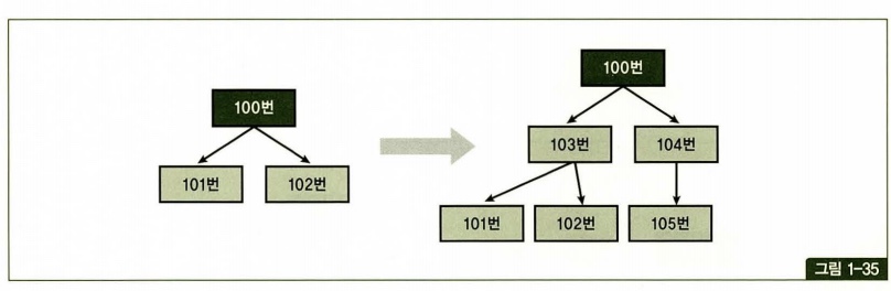 위의 그림처럼 103번 블록이 추가되면 100번 블록 정보를 새로 할당한 103번 블록에 모두 복제하고 100번 블록은 다시 루트레벨로 올라갑니다. 이 때문에 레코드의 위치가 달라기제 되고 physical guess가 모두 부정확해진 것입니다.
