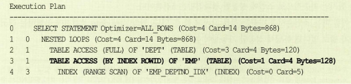 참고로 index 힌트에 어떤 인덱스를 사용하라고 명시하지 않았으므로 emp_hiredate_ix인덱스를 이용해 2,3,4,1순으로 처리될 수도 있습니다. 하지만 일반적으로 2,3,1,4순으로 처리되므로 이것을 기준으로 설명하겠습니다.
