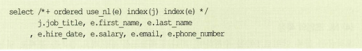 select /*+ ordered use_nl(d) */ e.empno, e.ename, d.dname